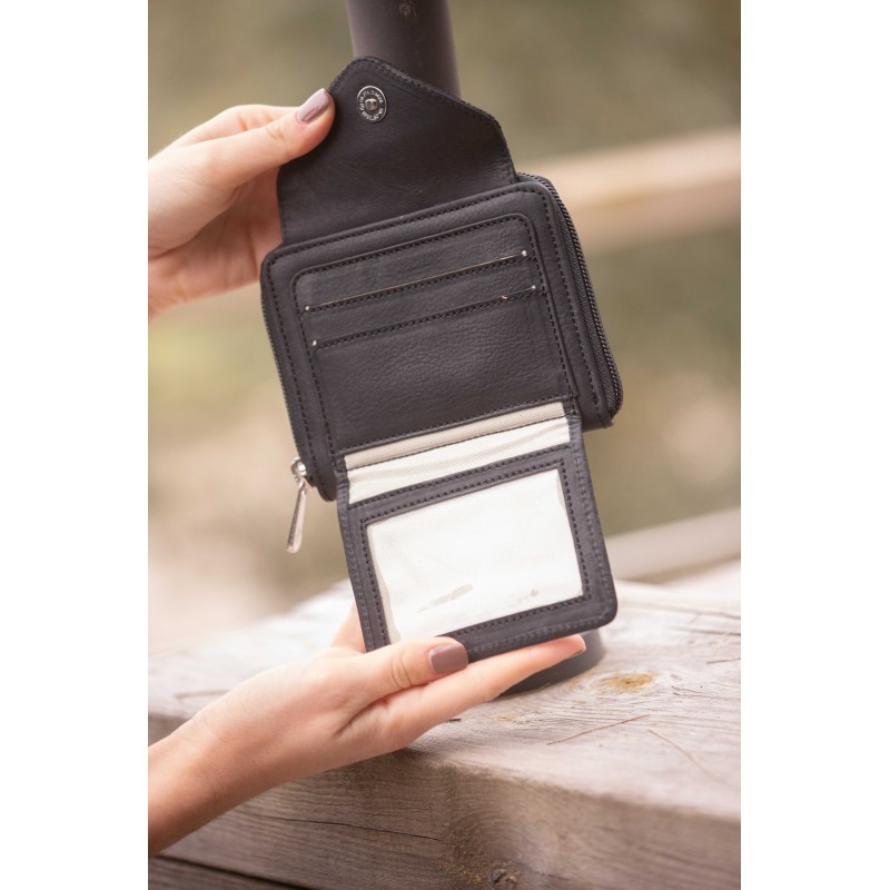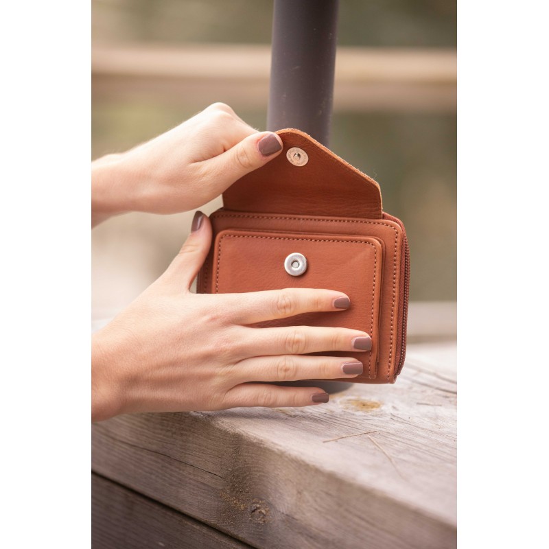 Porte-monnaie en cuir Clémence des collections Pénélope composé d'un compartiment zippé réservé à la monnaie et comportant quatre fentes pour des cartes.